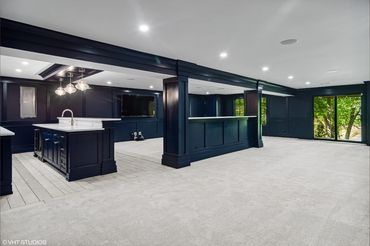 I bought this house that was built in the early 80s. We came in and did a high-quality redesign. This was a full gut rehab. The basement was very custom with a high-end bar and high-end movie theater!